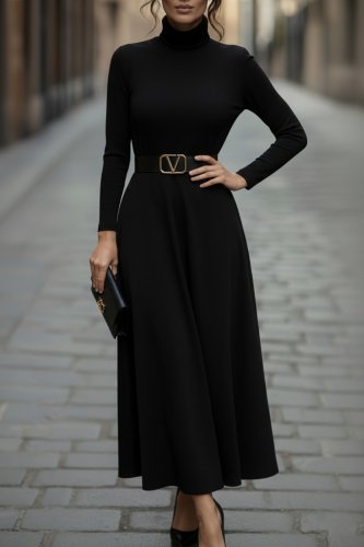 • Kadın uzun kollu balıkçı yaka uzun akrilik elbise