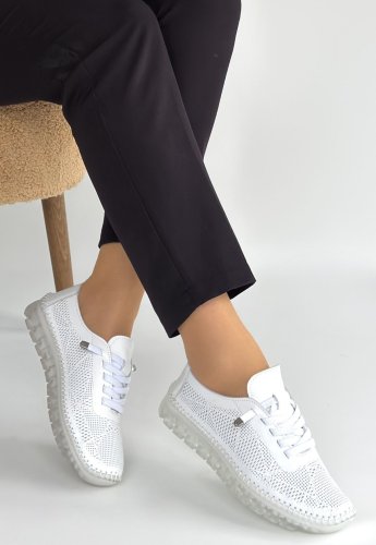 • Merja Beyaz Deri Bağcıklı Spor Ayakkabı