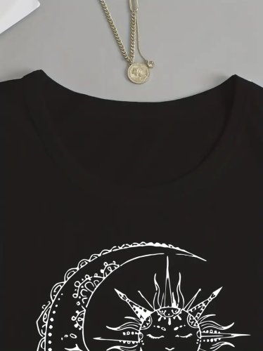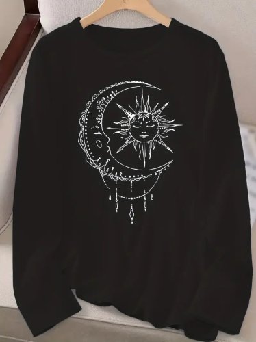 • Kadın uzun kollu bisiklet yaka ay baskılı viskon bluz