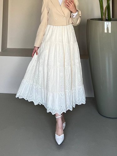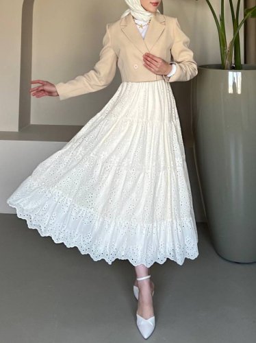 • Fisto İşlemeli Katlamalı Etek Beyaz